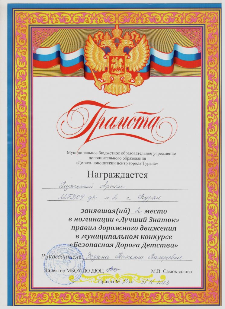 Без рубрики Воспитанник нашего детского сада Глухенький Артем принимал участие в муниципальном конкурсе «Бумажная вселенная» на тему «Безопасная Дорога Детства». По результатам этого конкурса занял 2 место . 15.11.2023 /